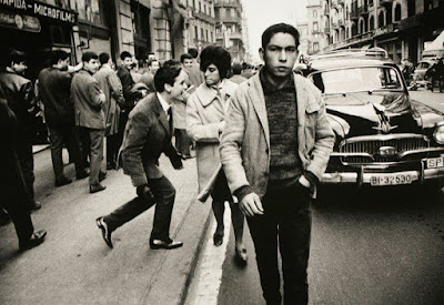 El sevillano es un solitario que mira a las mujeres con el descaro del veterano. El barcelonés se sabe en grupo, es joven y recurre a una puesta en escena más espectacular para provocar la risotada de los compañeros. La joven le esquiva con peligro para su integridad porque camina por una calzada donde hay coches. Nadie recala en la presencia del fotógrafo y la escena se desarrolla con la espontaneidad de lo tan acostumbrado como risible, de acuerdo con la mentalidad imperante en la época. Xavier Miserachs testimonió el acoso y derribo de una joven bajo la coartada de un piropo gregario. Los comentarios, al cabo de los años, casi sobran por su obviedad para quienes somos conscientes de aquella selva machista, que no era privativa del franquismo, tal y como demuestran las numerosas fotos coetáneas dedicadas al piropo en diferentes países.
